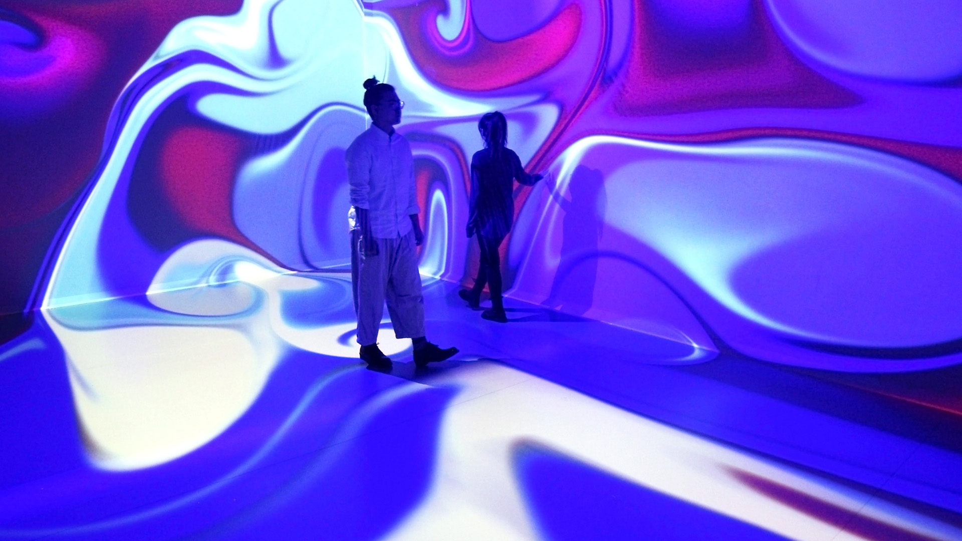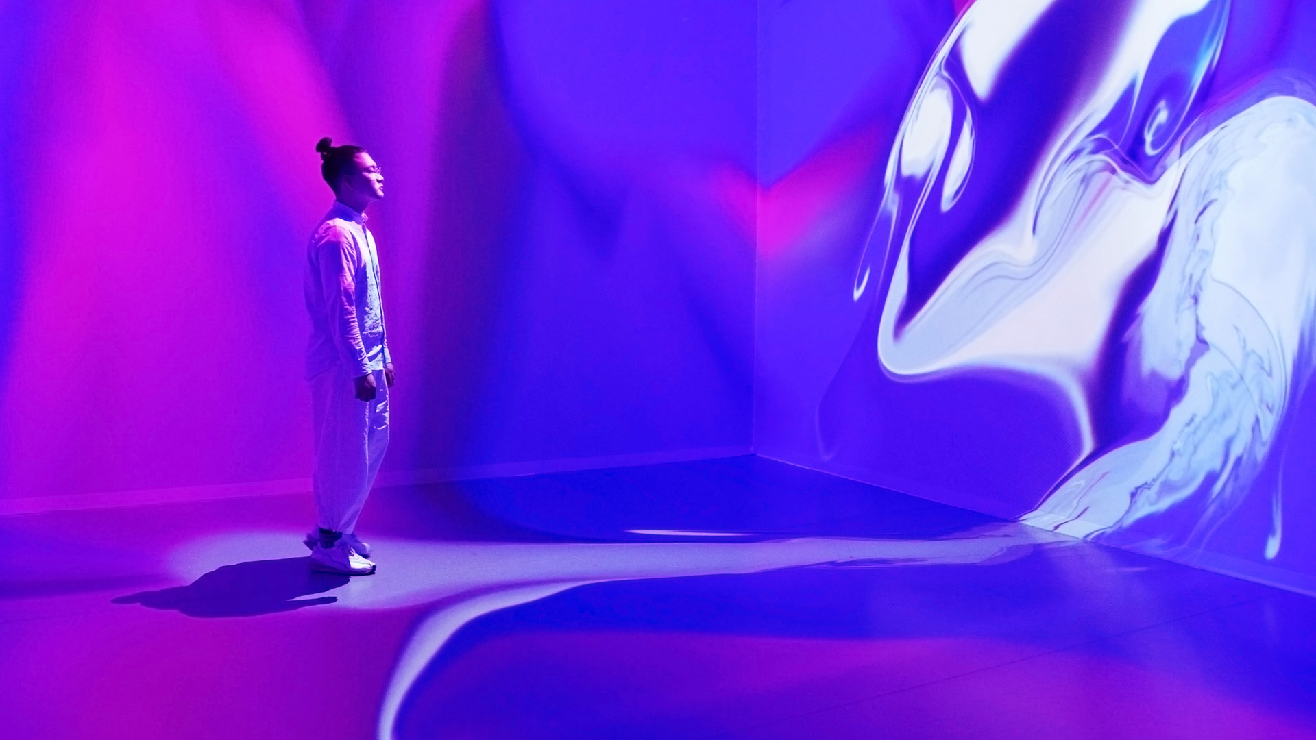 The colorful colors are the totems of all things in the world. Artists try to "dip" the surrounding environment through human subjective activities, dissolving consciousness, feelings, and thoughts in the murmur of time. The work uses the form of digital art to re-understand the relationship between people and the environment. The flowing solution is the clear and clear state of the fusion of all things, and the limited interweaving and infinite containment are the best proof of the encounter between "I" and the world and the erosion of "I" with the world. With the movement of the footsteps, a flowing color solution is generated. Each step reorganizes and animates new emotions. The feelings of man and the world are connected, and the imitation of Buddha is conceived, nurtured, and reincarnated in just a few minutes.