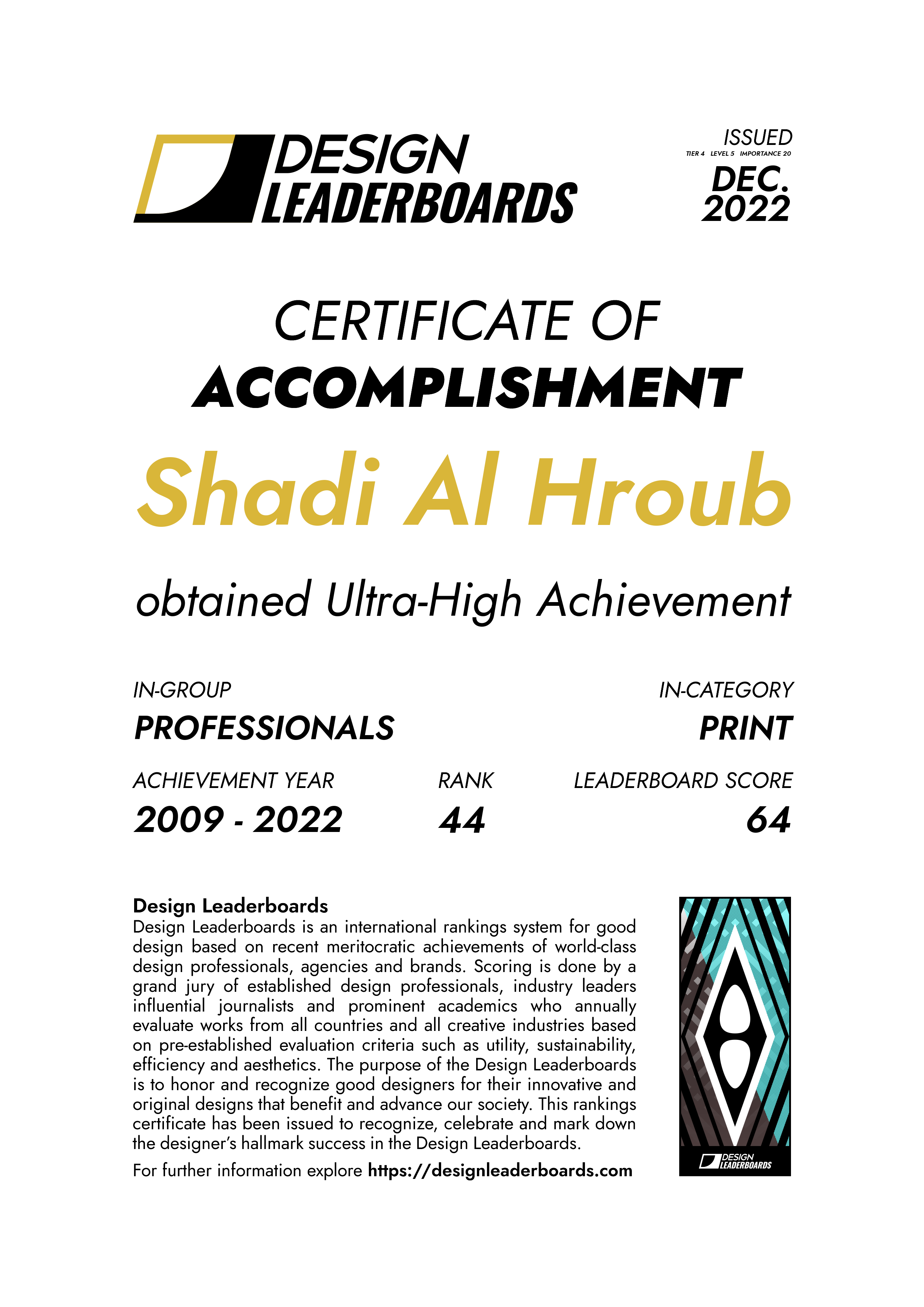 I am an award-winning creative director and leader with over 16 years of experience and 9 years of research in branding. I have received 38 international awards at the prestige level from around the world, cementing my status as a true expert in my field. With an extensive background in creative direction, packaging design, and branding, as well as multimedia, I have had the privilege to work with some of the most innovative brands and organizations worldwide. These include Leo Burnett, Hilton Worldwide, Jordan Aviation, Royal Falcon, Jordan Duty-Free, Hublot Watches, The One by Young Couture, and various NGOs such as UNRWA, the International Trade Center (UN), Global Health Development, and USAID. I have also taken on important leadership roles in the industry, serving as the chair of the Media Awards Judging Committee for the 17th annual Stevie Awards for Women in Business. Additionally, I have facilitated the World Design Challenge on Sustainable Packaging, which focuses on UN Sustainable Development Goal 12: Responsible Consumption and Production. Furthermore, I have served as a peer reviewer for the Journal for Artistic Research. As a professor at various esteemed American universities, I have shared my wealth of knowledge and experience with the next generation of professionals. My contributions to the industry and extensive background in branding and creative direction have earned me a reputation as a true master in my field, highly respected and accomplished professional worldwide.