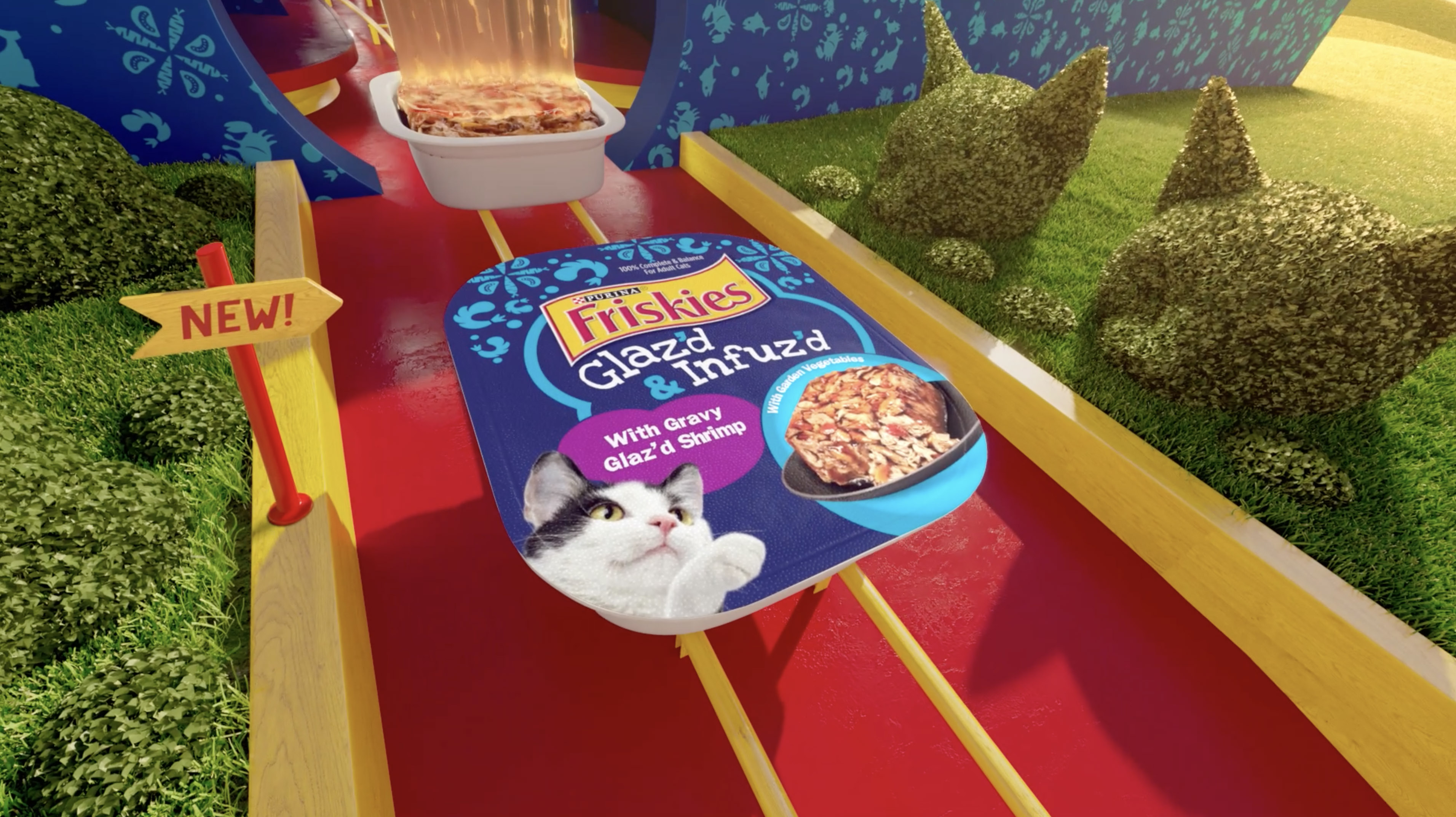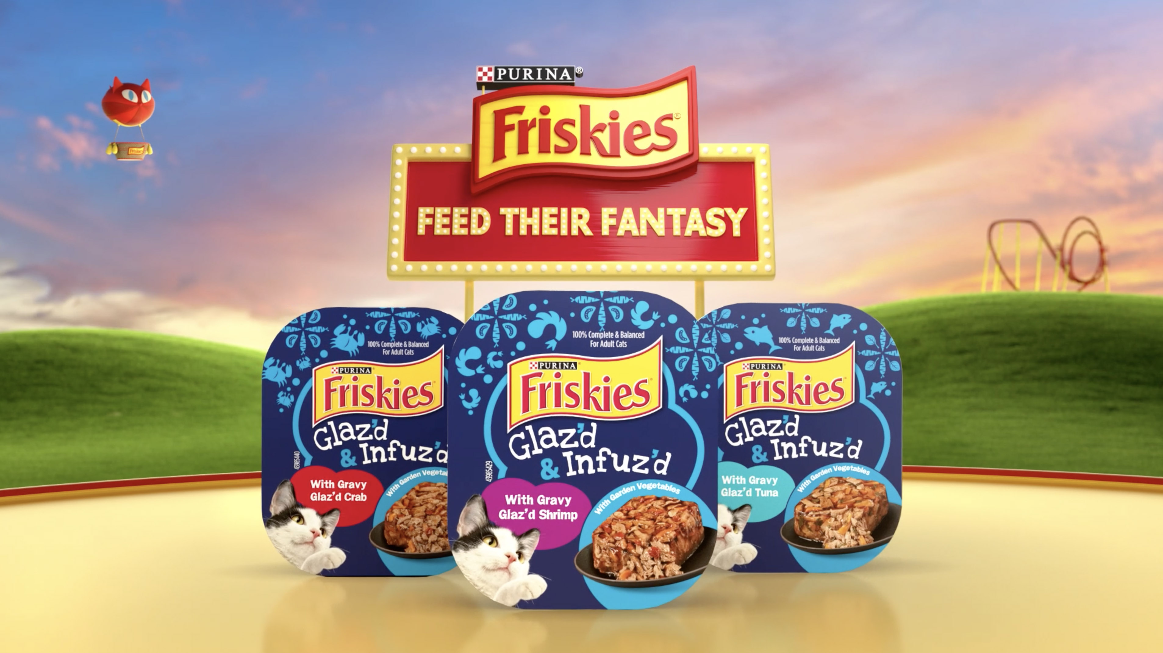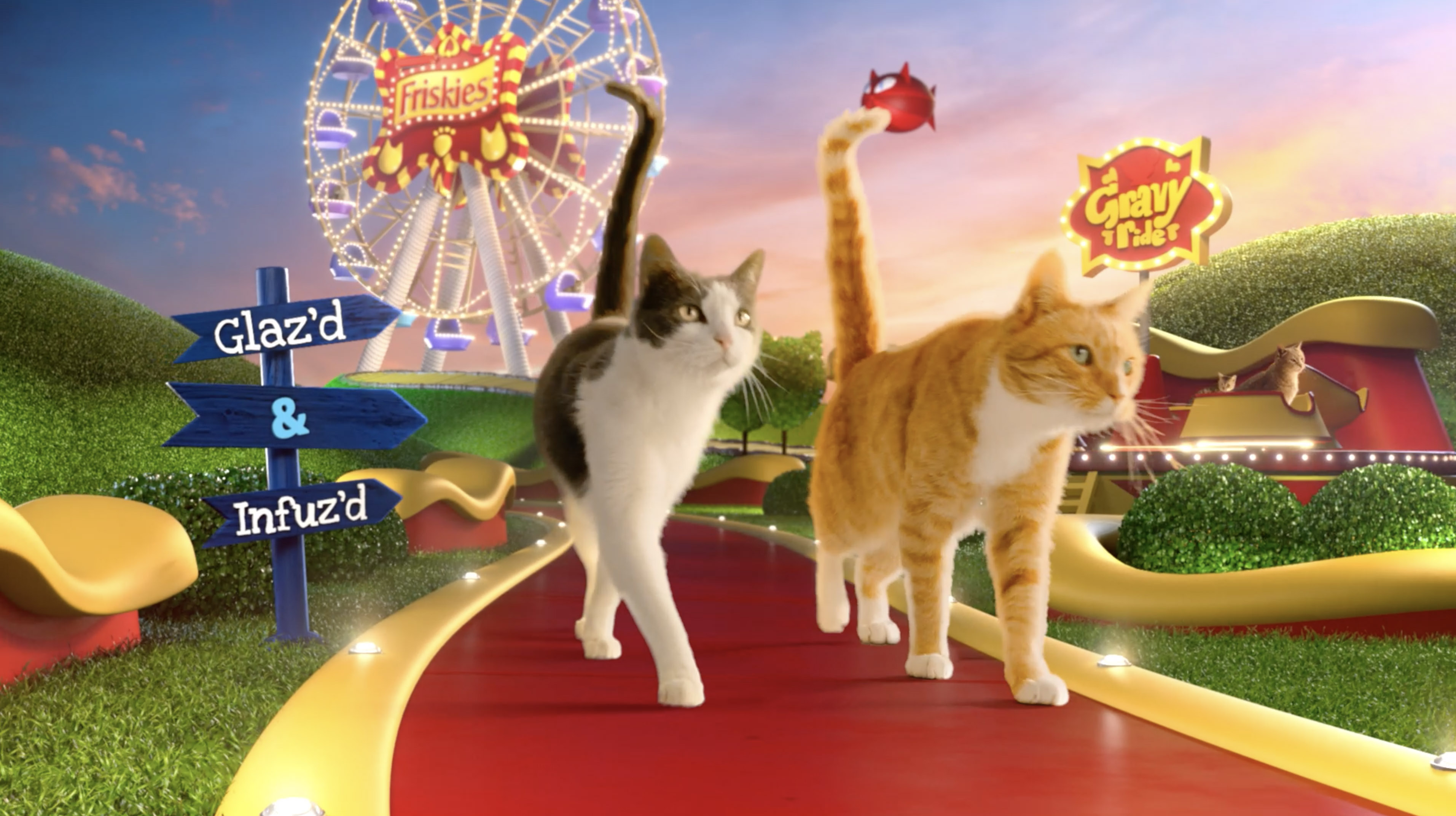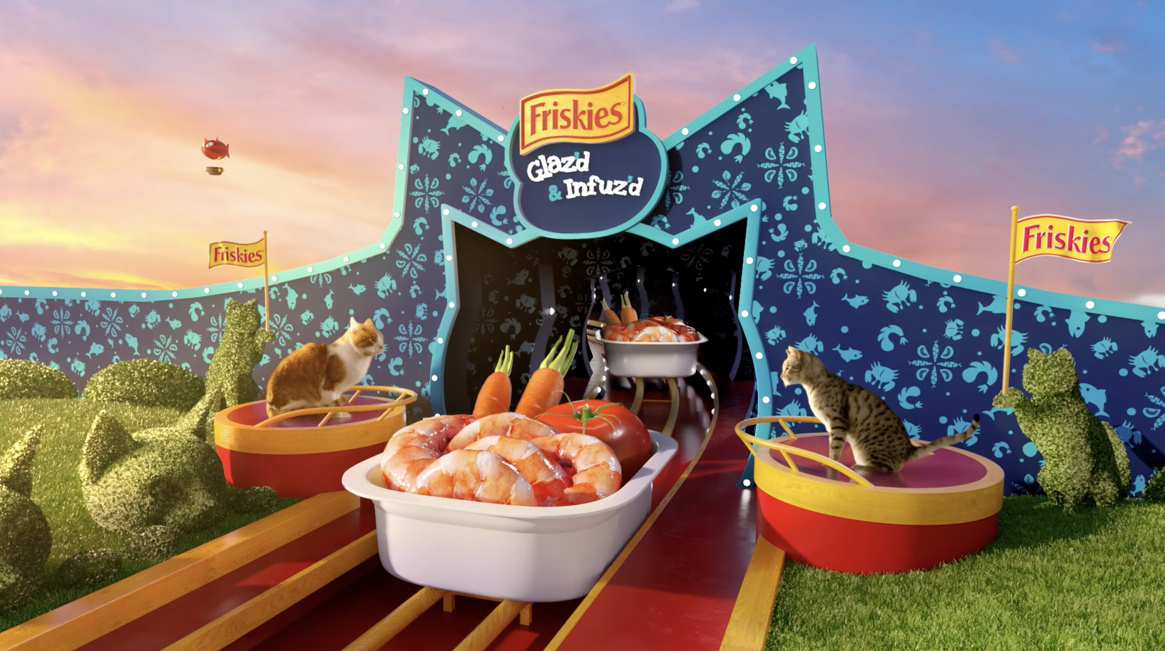 The gates to Friskies World magically open, welcoming 2 curious cats to a place unlike any other where their wildest food dreams come true. As our cool cats explore Friskies World, they discover that the fun way Friskies makes their food is just as inventive and exciting as the food itself. They find a fantastic tunnel where dishes of real shrimp and garden veggies glide through a gravy waterfall and are magically transformed into servings of New Friskies Glaz’d & Infuze’d, another delicious mealtime experience they can’t wait to get their paws on.