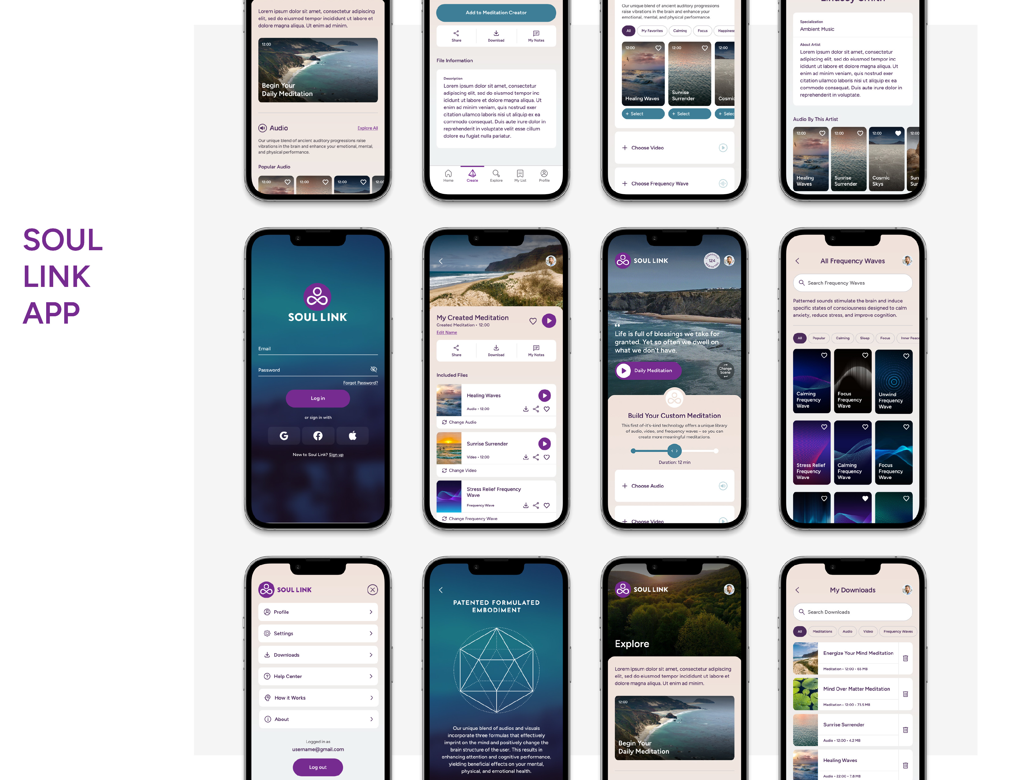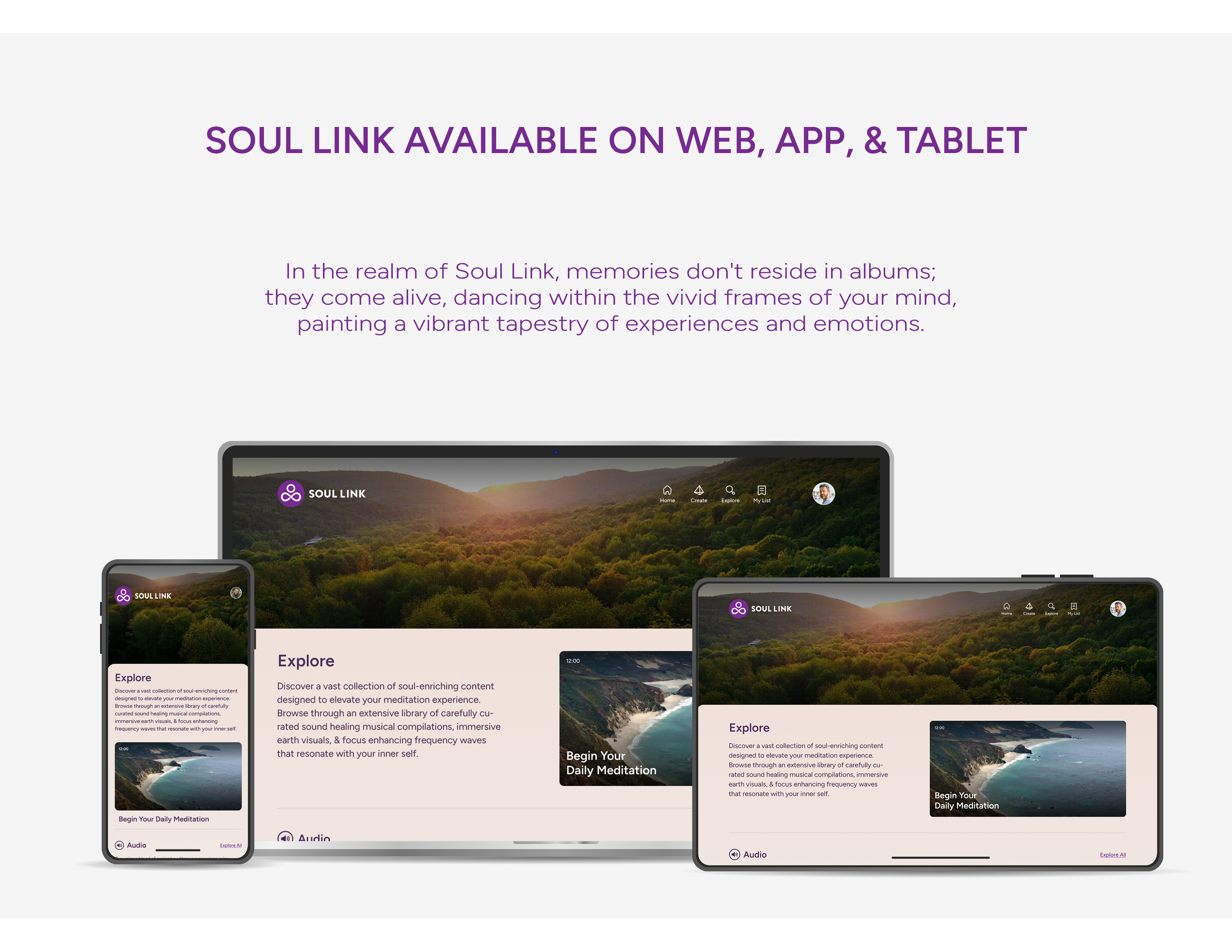Soul Link is more than just a product; it's a paradigm shift in the realm of holistic well-being through its innovative approach to meditation, backed by meticulous research and a commitment to fostering positive change in individuals. The widespread mental health crisis, marked by anxiety, stress, isolation, and depression, especially among the younger generation, is being addressed by Dr. Dawn Ella through her innovative Soul Link meditation technology, designed to catalyze self-discovery and inner growth. Soul Link redefines meditation, propelling users into a realm of self-discovery, transcendence, and inner growth. What sets it apart is its evidence-based design, grounded in extensive research on the mind-body connection and the impact of music on the brain, creating a curated fusion of science and spirituality. The product's essence lies in its three pillars: 1. Healing Musical Compositions: Soul Link introduces a unique blend of healing musical compilations handcrafted to induce positive changes in the brain and human consciousness. Within Soul Link, these compositions serve as a powerful catalyst for emotional regulation and mental wellness. They go beyond mere auditory pleasure, delving into the realm of healing sounds that resonate with users on a profound level. 2. Cinematic Earth Videography: Soul Link envelops users in Cinematic Earth Videography, providing a multisensory experience. These captivating visuals transport individuals to serene natural environments, fostering a sense of connection with the Earth and the self. This visual aspect of Soul Link complements the auditory experience, creating a holistic journey toward inner peace. 3. Focus-Enhancing Frequency Waves: The product's focus-enhancing frequency waves serve as the bridge between the conscious and the subconscious. By harmonizing brainwave patterns, Soul Link empowers users to unlock their untapped potential and elevate their state of being. Soul Link emerges as a transformative beacon of hope, transcending the boundaries of conventional meditation in a world where mental wellness is paramount. As an entry for the Product Design Award, Soul Link epitomizes innovation, dedication, and a relentless pursuit of improving lives through design. It is a product that not only meets the needs of our time but also pioneers a new era in holistic well-being.