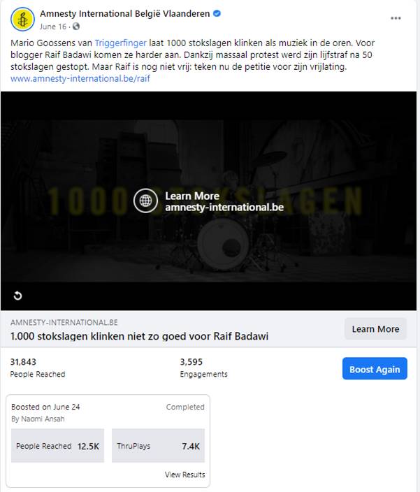1000 Strokes is a stirring online music video with Mario Goossens, drummer for Triggerfinger, containing exactly 1000 strokes. 1000 strokes of the cane is blogger Raif Badawi’s sentence in Saudi Arabia. The impactful drum solo in this video leaves no doubt: caning is hard. Time for Raif's release. Time for action on www.amnesty-international.be